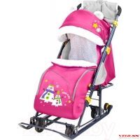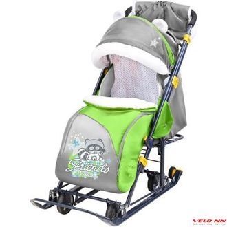 Санки-Коляска Ника Детям НД 7-6 рисунок с енотом зеленый/ серый