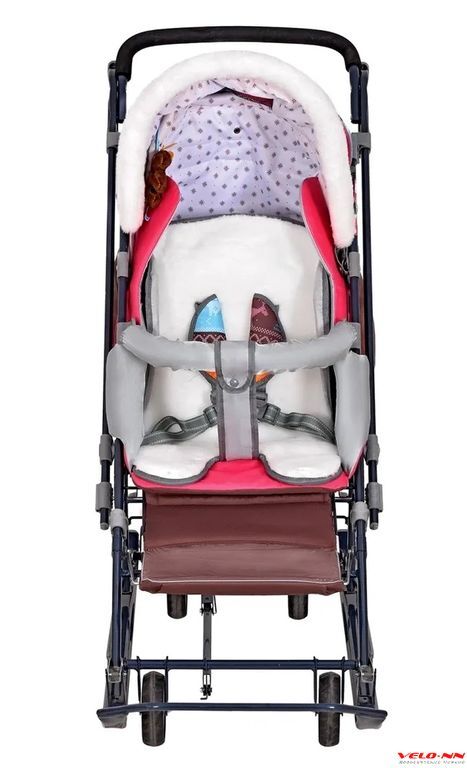 • высокий складной  трехсекционный козырек с увеличенной высотой по спинке  позволяет чувствовать себя комфортно  малышу в шапке с помпоном