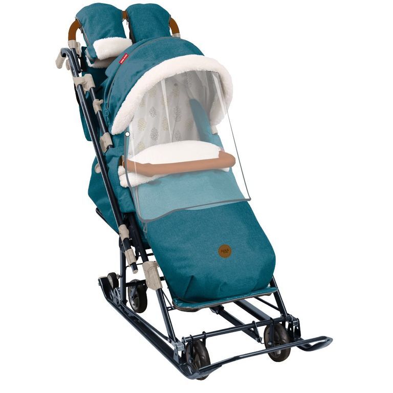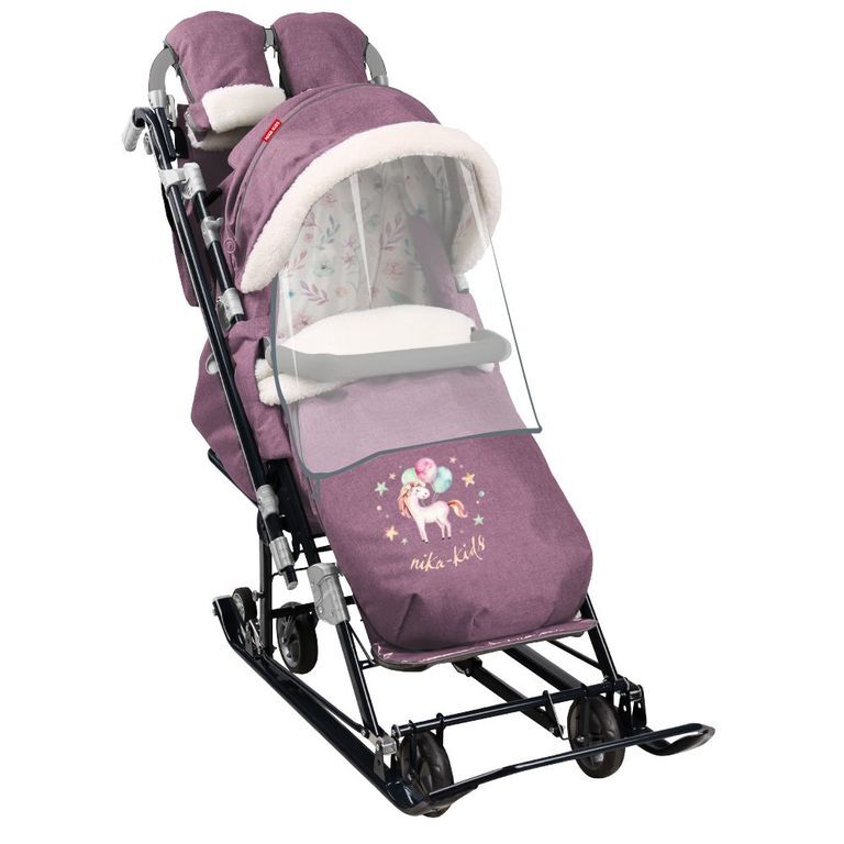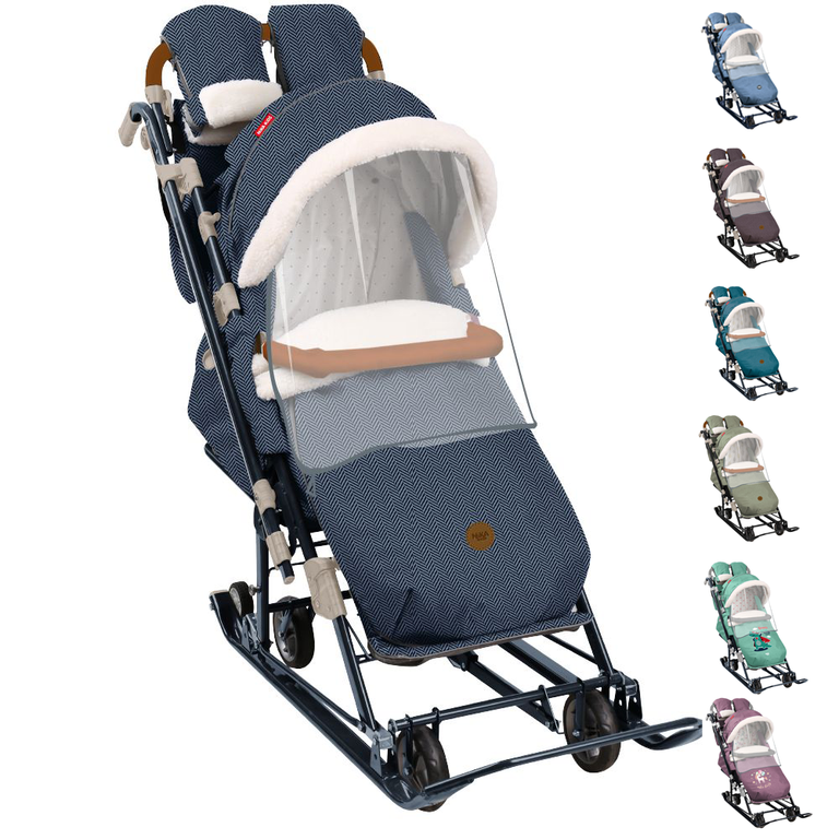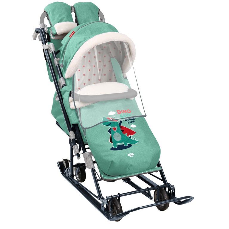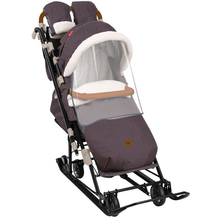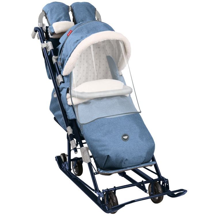 • съемный прозрачный тент от ветра и дождя с двумя молниями, крепится к чехлу коляски на пуговицу