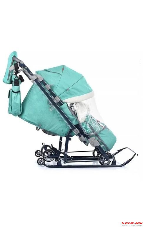 • съемный прозрачный тент от ветра и дождя с двумя молниями, крепится к чехлу коляски на пуговицу