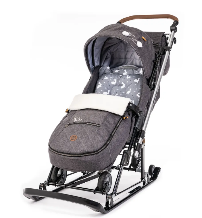 Санки-КОЛЯСКА J1 Joy every day с кроликами серый