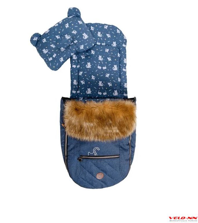 Санки-коляска Ника Joy every day1 J1/2 синий с котятами