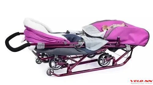 • облегченный складной каркас на круглой металлической трубе, механизм смены полозьев на колеса (выдвижная колесная база);