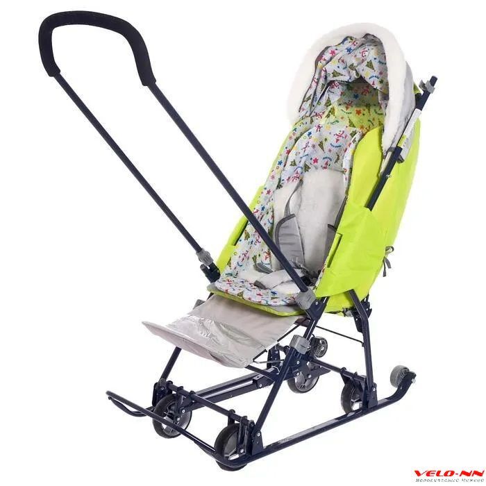 • облегченный складной каркас на круглой металлической трубе, механизм смены полозьев на колеса (выдвижная колесная база);