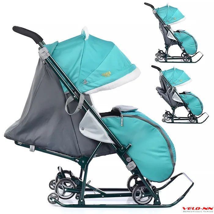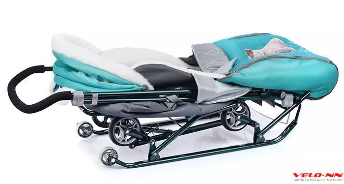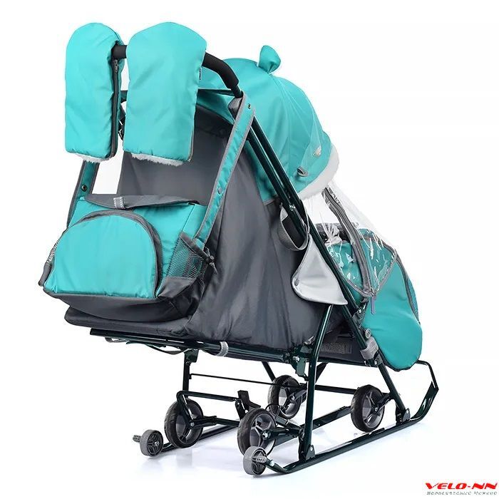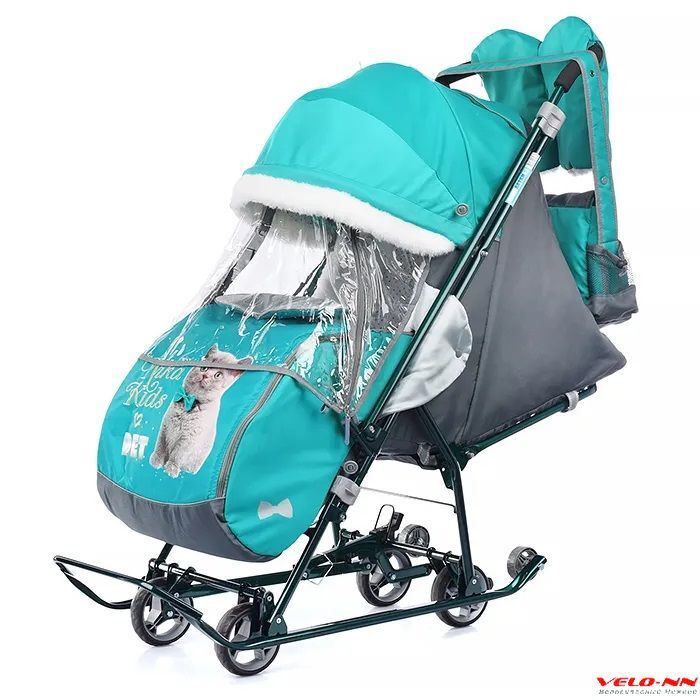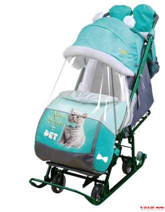 Санки-коляска Ника Наши Детки НДТ5-1/1 рисунок с котенком изумрудный