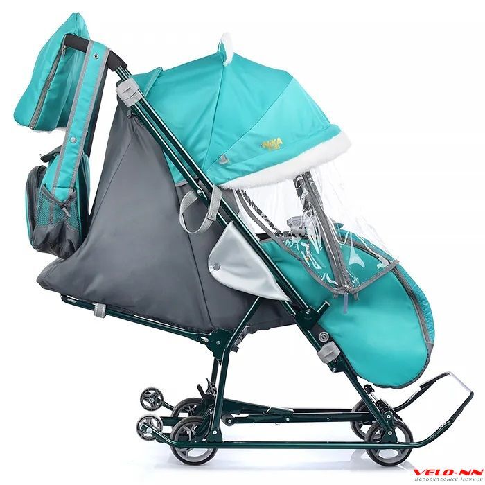 • съемный  прозрачный тент от ветра и дождя с двумя молниями, крепится к чехлу коляски на пуговицу