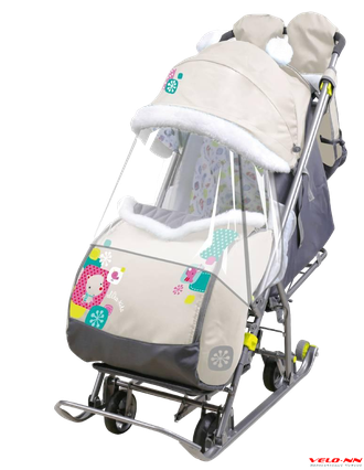 Санки-коляска Ника Наши Детки НДТ5-1/5 рисунок с медвежонком бежевый