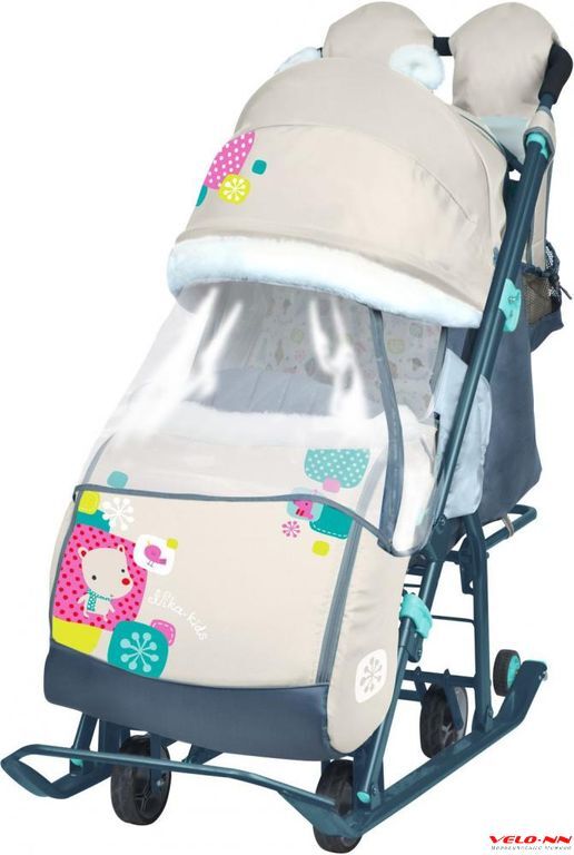 Коляска комбинированная с трансформируемым кузовом позволяет передвигаться по любой дороге. Нажатием ноги на педаль опускаются колеса, и вы можете везти коляску по асфальту или по гладкому полу. Еще одно нажатие — коляска трансформируется в санки и снова скользить по снегу! Крыша, чехол для ножек и ушки на крыше отделаны мехом, на ручку коляски надеваются меховые рукавички для мамы. Яркие детские рисунки на чехле для ног с двумя молниями.