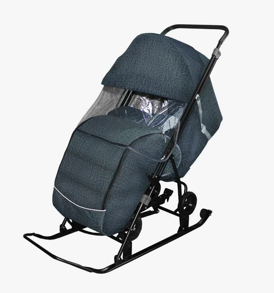 Санки Коляска Снежинка универсал 1 серо-зелёный лён.