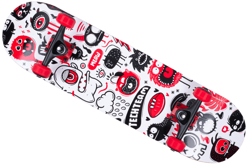 Скейтборд X-GAME — стильная новинка от компании Tech Team. Уникальный принт деки порадует не только детей, но и взрослых. Отлично подойдёт для катания по городу, а также паркам и другим местам. В целом, этот скейтборд сделан для новичков, кто безумно хочет научиться овладеть первыми навыками трюков и катания. Дека изготовлена из девяти слоёв китайского клена, что обеспечит прочность и гибкость. Доска обладает хорошей маневренностью при поворотах и разворотах, с двойным концевым загибом. Колеса имеют стандарт жесткости 95А, что обеспечит плавную езду по хорошей ровной дороге. Бушинги (амортизаторы) стандарта жесткости 95А. На скейтборде несомненно стоит выделить подшипники стандарта ABEC 7.