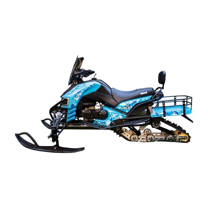 Двухместный снегоход Wels 200RS New V2 оборудован одноцилиндровым двигателем внутреннего сгорания, мощностью 13 л.с., с воздушным охлаждением. Рабочий объём цилиндра составляет 170 см³. Четырёхтактный мотор потребляет 2.5 л топлива марки АИ-92 и разгоняет снегоход до 50 км/ч.