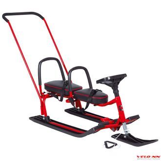 Снегокат детский 505 "TWINS BABY PUSH" имеет два независимых комфортных сиденья, две складных спинки с мягкой оплеткой для защиты спины ребенка и съемную П-образную ручку толкатель с изоляцией из вспененного каучука. Спинки имеют эргономичную форму, и не отнимают сантиметры у сиденья снегоката. Благодаря широким сиденьям, каждое из которых оснащено индивидуальным ремнем безопасности - двойня или дети-погодки легко разместятся на снегокате и надежно защищены от падения на поворотах.