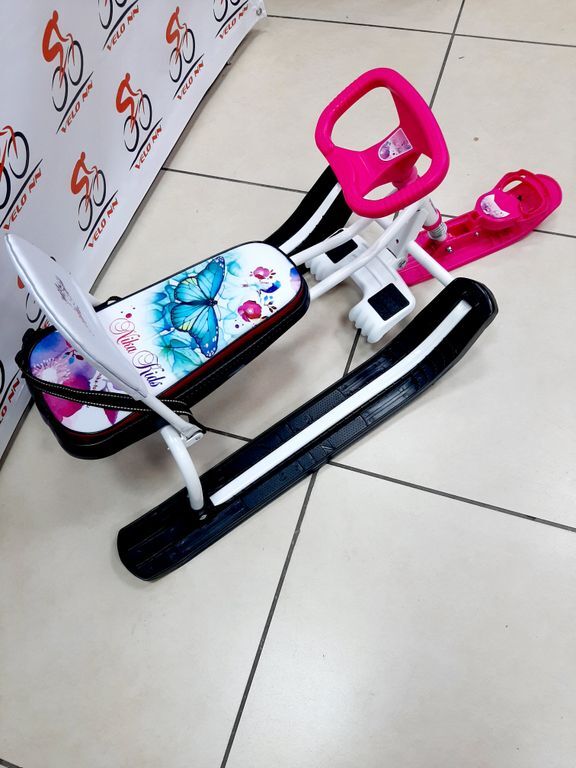 Снегокат Nika Спорт 4-1 Бабочки/БЕЛЫЙ со спинкой ТС4-1/Б2