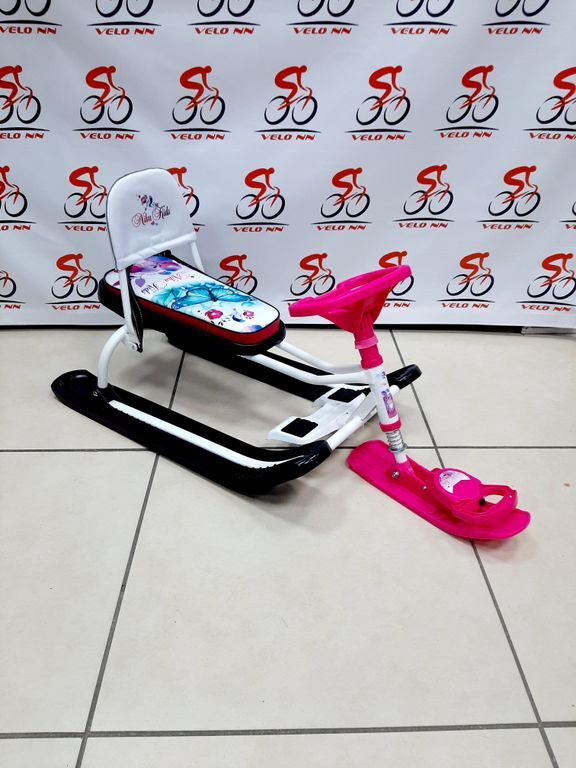 Снегокат предназначен для перевозки детей от 4 до 12 лет по плотному снегу или льду, катанию с горок. Имеет сварную конструкцию из стальных труб, пластиковых элементов и мягкое сиденье, обтянутое  искусственной кожей с рисунком. Буксировочный трос с автоматической намоткой. Усиленный тормоз эффективен на обледенелой поверхности. Спинка съемная складная. Комплект наклеек на снегокат в подарок!