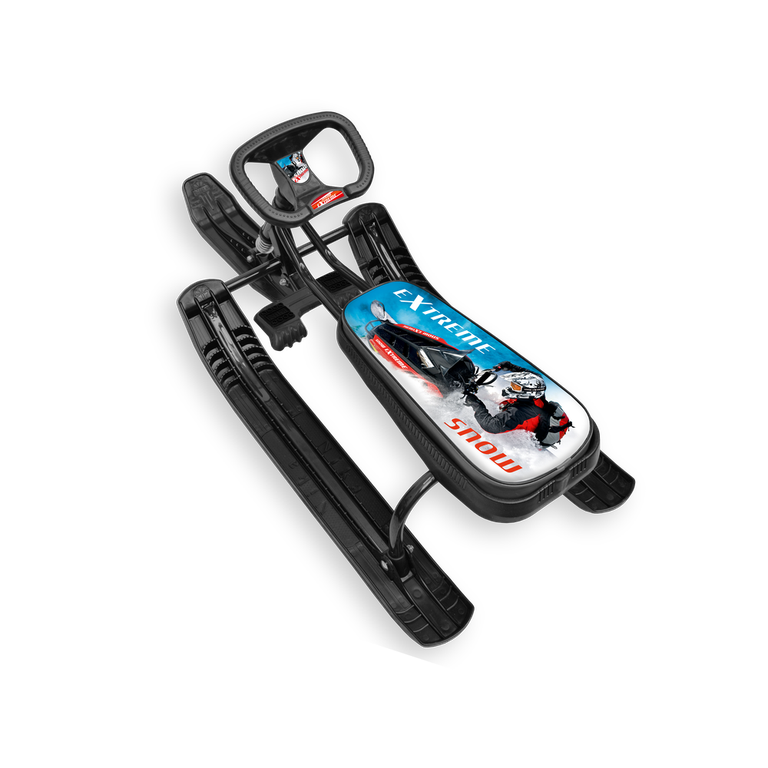 Снегокат предназначен для перевозки детей от 7 до 12 лет  по плотному снегу или льду, катанию с горок. Имеет сварную конструкцию из стальных труб, пластмассовые лыжи и мягкое сиденье, обтянутое  искусственной кожей с рисунком .  Усиленный тормоз эффективен на обледенелой поверхности. Поставляется в разобранном виде. Комплект наклеек на снегокат в подарок!