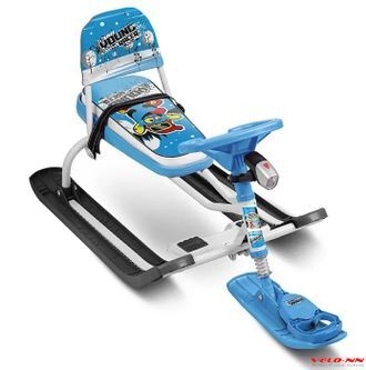 Яркий маневренный спортивный оценят и дети, и взрослые. Это и отличный вариант для семейного досуга. Эта модель оснащена лыжами, которые позволяют ехать и вперед и назад, а также эргономичным рулем. Модель имеет прочный металлический каркас, удобное сиденье и классическое расположение полозьев. Имеется спинка и фонарик. Ребенок может управлять движением снегоката при помощи руля, который направляет ведущую переднюю лыжу. Также имеется прочная веревка с удобной пластиковой ручкой, при помощи которой снегокат легко перемещать. Снегокат имеет мягкое сиденье с принтом. Имеется усиленный буксировочный тормоз.