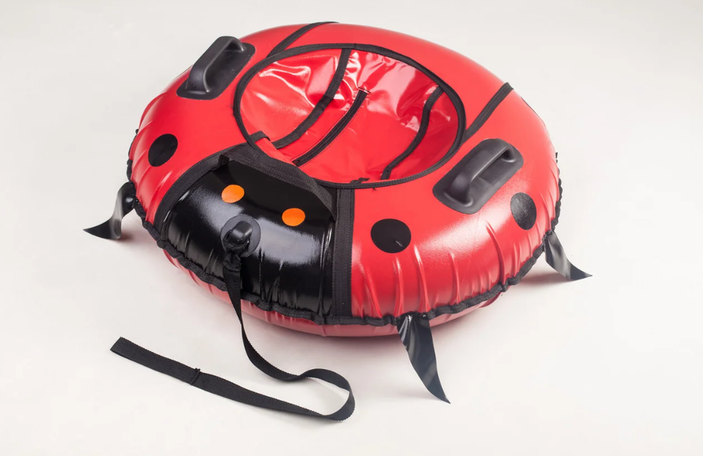 Ватрушки «Божья коровка» отличаются дизайном и прекрасным качеством. Внутри автомобильная камера. Снаружи прочный Французский чехол из ПВХ повышенной плотности 900гр/кв.м. Для доступа к камере на чехле есть молния. Тюбинг отлично скользит и амортизирует неровности на горке. Монолитные ручки из пластика, увеличенное посадочное место.
