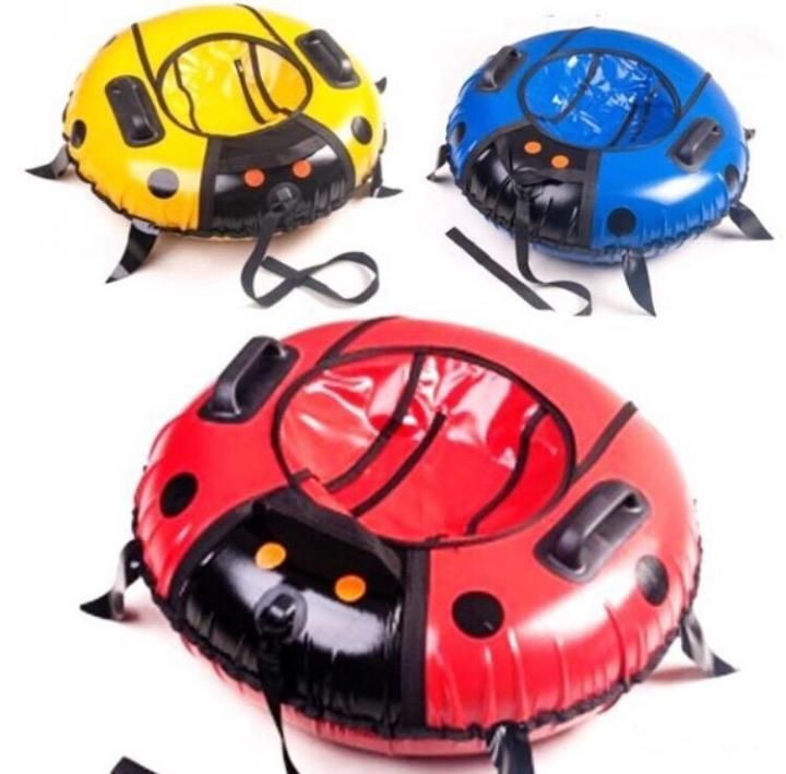 Ватрушки «Божья коровка» отличаются дизайном и прекрасным качеством. Внутри автомобильная камера. Снаружи прочный Французский чехол из ПВХ повышенной плотности 900гр/кв.м. Для доступа к камере на чехле есть молния. Тюбинг отлично скользит и амортизирует неровности на горке. Монолитные ручки из пластика, увеличенное посадочное место.