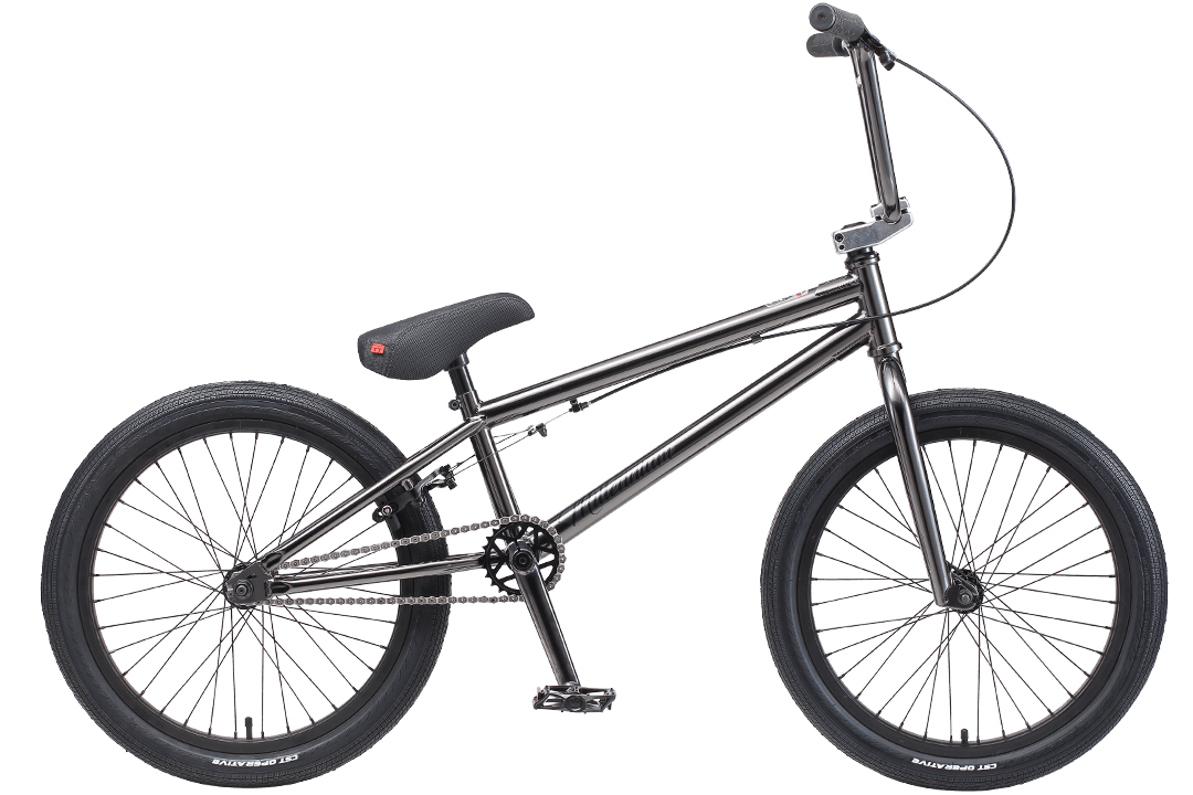 На этом BMX стоит трехкомпонентная хромомолибденовая система с алюминиевыми педалями-платформами и передней алюминиевой ведущей звездой на 25 "зубов". Вилка, рама и руль сделаны из стали, так как именно на эти части велосипеда приходится основная часть нагрузки. Остальные части BMX сделаны из алюминия, что бы сделать велосипед максимально легким. Некоторые опытные Райдеры снимают тормоза, чтобы еще больше выиграть в весе велосипеда. Мы не советуем это делать, так как безопасность важнее всего.