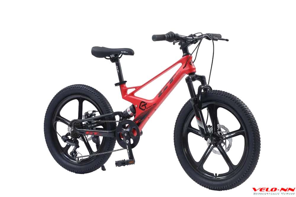 Красивый, яркий детский велосипед со скоростями и легкой алюминиевой рамой. Не уступающий по оснащению горным взрослым велосипедам, так как имеет 7 скоростей, задний амортизатор, вилку с амортизатором, дисковые тормоза. В комплекте крылья, подножка