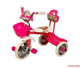 Вел.3-кол.T002PM*"ЧИЖИК"без ручки, метал. колёса 10 и 8, розовый, свето-звук. эффекты, пластм. сиденье