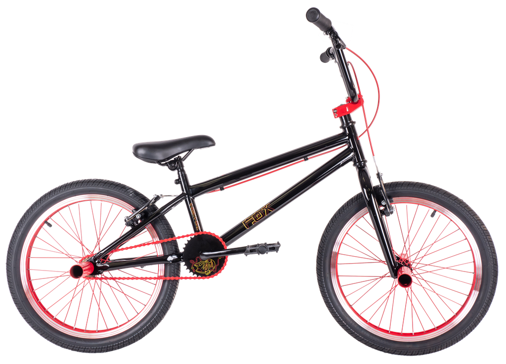 BMX оснащен передним и задним тормозом типа V-brake, трансмиссией из ведущей звезды на 32 "зуба" и задней на 16.