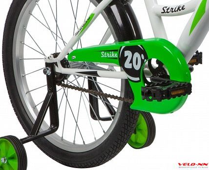 Велосипед Novatrack Strike 20 достоин вашего внимания! Лаконичный дизайн и качественная сборка неоспоримые преимущества этого велосипеда. Прочная стальная рама выдерживает сильные нагрузки. Наличие дополнительной пары колес, которые легко снять при необходимости, обеспечивает безопасность и равновесие при езде для начинающих юных велосипедистов. Ножной педальный тормоз прост в обращении, поэтому не вызовет у ребенка трудностей. Цепь защищена специальным кожухом.