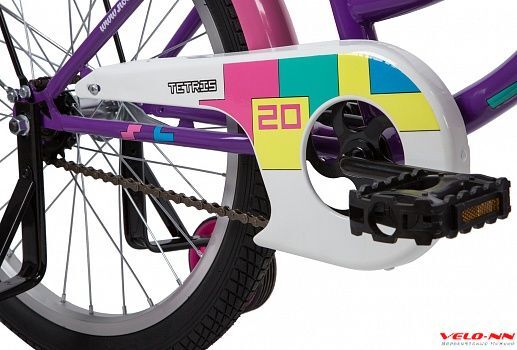 Novatrack Tetris 20 это девчачий красавчик-велосипед для классных покатушек во дворе или на даче. Прежде всего, он комфортный, безопасный и надежный. Велосипед представлен в трех цветах белом, розовом и фиолетовом. Укомплектован багажником и дополнительными колесиками, которые очень просто снять, если ребёнок уже умеет держать равновесие и катается уверенно. Элементы цепи закрыты кожухом, предотвращая попадание грязи или одежды в подвижные детали трансмиссии, а полноразмерные металлические крылья, идущие в комплекте, защитят от грязи. При желании руль и сидение велосипеда легко регулируются по высоте.
