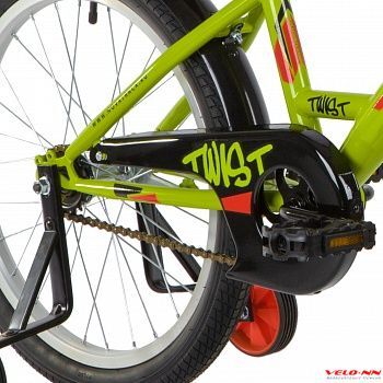 Novatrack Twist 20 этот велосипед гарантированно привлечет ваше внимание! Яркий дизайн выгодно выделяет его среди остальных. Велосипед оснащен крепкой стальной рамой, двумя дополнительными съемными колесами, благодаря которым ребенок будет уверенно держать равновесие при езде. Полная защита цепи помогает избежать попадания грязи в трансмиссию. Простой и надежный ножной тормоз позволит быстро затормозить в случае необходимости. А крылья защитят велосипед и его обладателя от грязи и пыли в любую погоду.