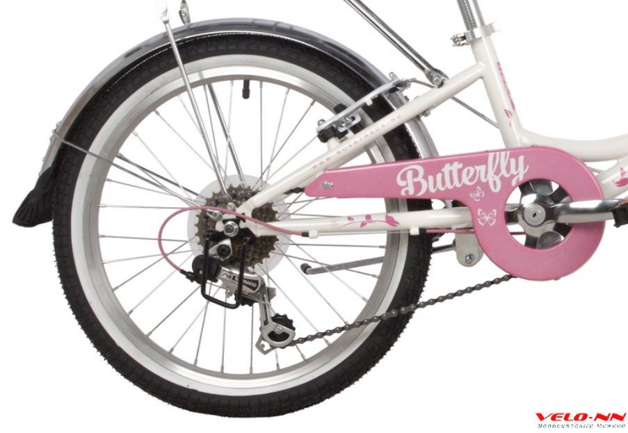 Городской велосипед для девочек Novatrack Butterfly. Основой велосипеда является прочная стальная рама, 20-ти дюймовые колеса с мощными покрышками и двойные алюминиевые обода. Оборудован высокоэффективными V-Brake тормозами и шестискоростной трансмиссией. Вместительная корзинка, звонок, крылья, катафоты и задний багажник поставляются в комплекте. Велосипед идеально подходит для езды по асфальтированной дороге и пересеченной местности.
