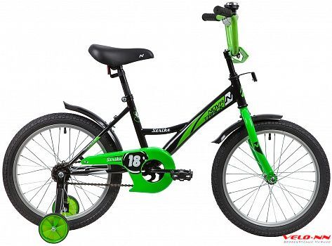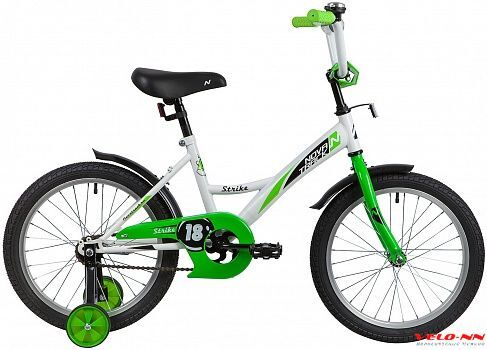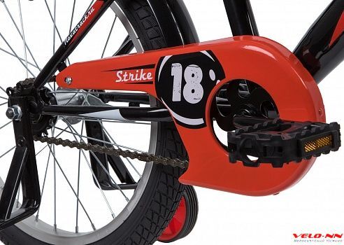 Велосипед Novatrack Strike 18  это просто крутой велосипед!  Объясним почему качественная сборка и доступная стоимость  главные его  преимущества. Прочная стальная рама выдержит ежедневные катания и прослужит не один сезон. Наличие дополнительной пары колес, которые легко снять при необходимости, обеспечивает безопасность и равновесие при езде для начинающих юных велосипедистов. Ножной педальный тормоз прост в обращении, поэтому не вызовет у ребенка трудностей или вопросов. Цепь полностью защищена. Кроме того, велосипед оснащен удобным багажником и звонком.