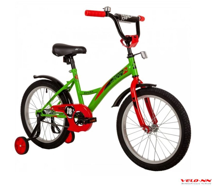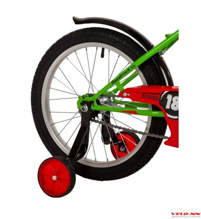 Велосипед Novatrack Strike 18  это просто крутой велосипед!  Объясним почему качественная сборка и доступная стоимость  главные его  преимущества. Прочная стальная рама выдержит ежедневные катания и прослужит не один сезон. Наличие дополнительной пары колес, которые легко снять при необходимости, обеспечивает безопасность и равновесие при езде для начинающих юных велосипедистов. Ножной педальный тормоз прост в обращении, поэтому не вызовет у ребенка трудностей или вопросов. Цепь полностью защищена. Кроме того, велосипед оснащен удобным багажником и звонком.