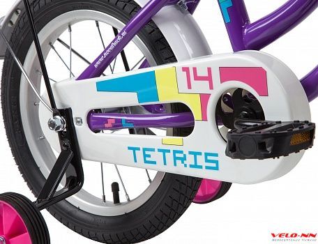 Tetris 14 классный, яркий велосипед! Выбирайте любой цвет белый, розовый и фиолетовый. Комфортный, безопасный и надежный, он прослужит вашему ребенку не один год. Велосипед оснащен изящной стальной рамой, яркими компонентами, корзиной для детских полезных мелочей и хромированным багажником. Регулировки позволят подобрать комфортную посадку, а крылья, идущие в комплекте, защитят велосипед и наездника от грязи и брызг в плохую погоду. Цепь защищена специальным защитным кожухом, закрывающим подвижные детали. А дополнительные колесики делают этот велосипед идеальной стартовой моделью для начинающих!
