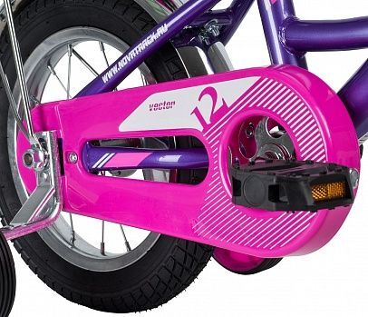 Детский велосипед Novatrack Vector 12 велосипед для самых маленьких и самых активных малышей! Поверьте, ребенок будет в восторге от этого яркого, прочного и надежного велика! Для максимально комфортного катания велосипед оснащен багажником, защитой цепи, крыльями, а еще - дополнительной парой съемных колес, которая поможет начинающему маленькому райдеру удерживать равновесие при катании и постепенно освоить двухколесный байк. Прочная стальная рама выдерживает даже самые сильные нагрузки. Ножной тормоз очень прост и удобен в использовании для ребенка.