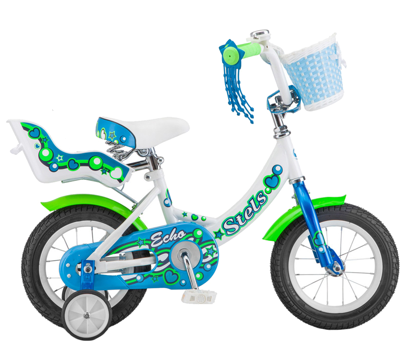 Stels Echo 12 (2021) – детский велосипед для самых маленьких принцесс, которые желают научиться езде на байке даже в том случае, если не могут еще держать равновесие на велосипеде. Именно для них предусмотрены съемные боковые маленькие колеса. За счет цветовых решений байк стоит рекомендовать только девочкам, а для мальчиков стоит обратить внимание на другие линейки моделей детских велосипедов Stels. Echo 12 имеет все необходимое для начинающего райдера. Здесь есть прочная стильная стальная рама с заниженной основной трубой, что удобно для простой посадки на велосипед. 12-дюймовые колеса со стальными ободами оснащены покрышками с глубоким протектором. Короткие крылья защищают ребенка от воды при проезде луж, езда по которым детям доставляет особое удовольствие. Высокий руль со звонком, удобное седло, светоотражатели и особая защита цепи и звезд, закрывающая цепь по всей длине, придают особый комфорт при езде по дворовым асфальтовым дорожкам. В качестве дополнения модель имеет небольшую корзину на руле для перевозки игрушек и личных вещей, а сзади установлено игрушечное велокресло, в которую юная велоледи может посадить куклу и закрепить ее ремнями безопасности.