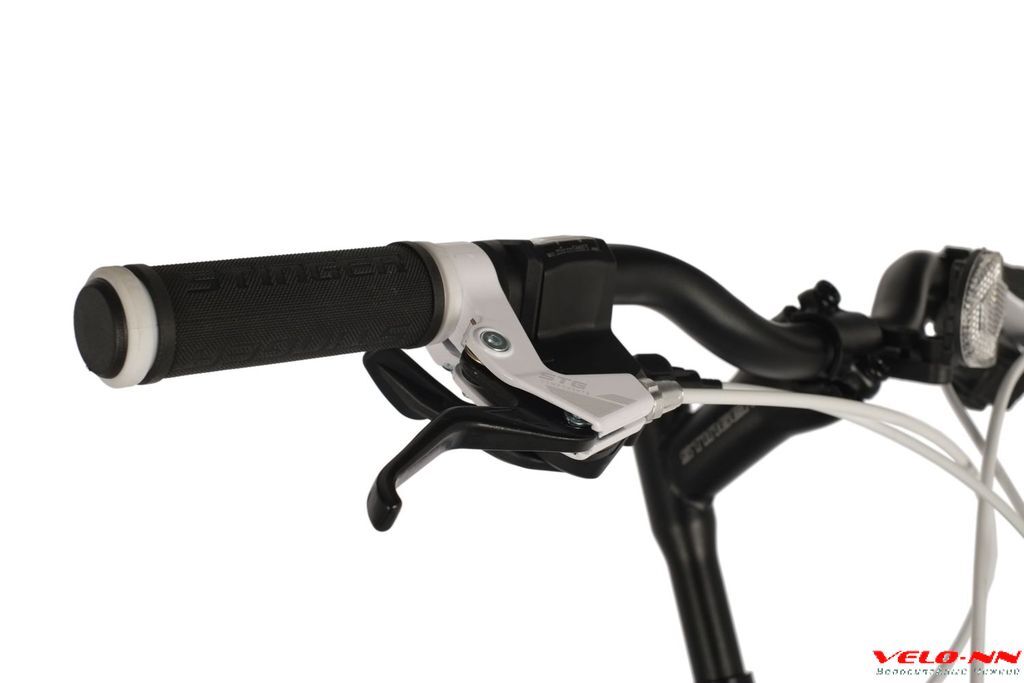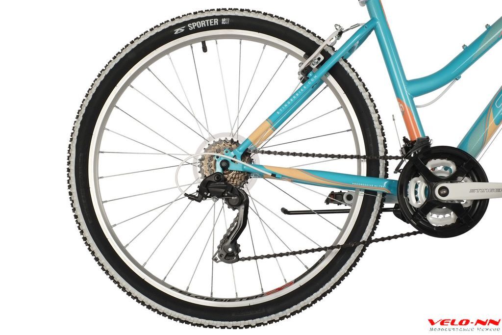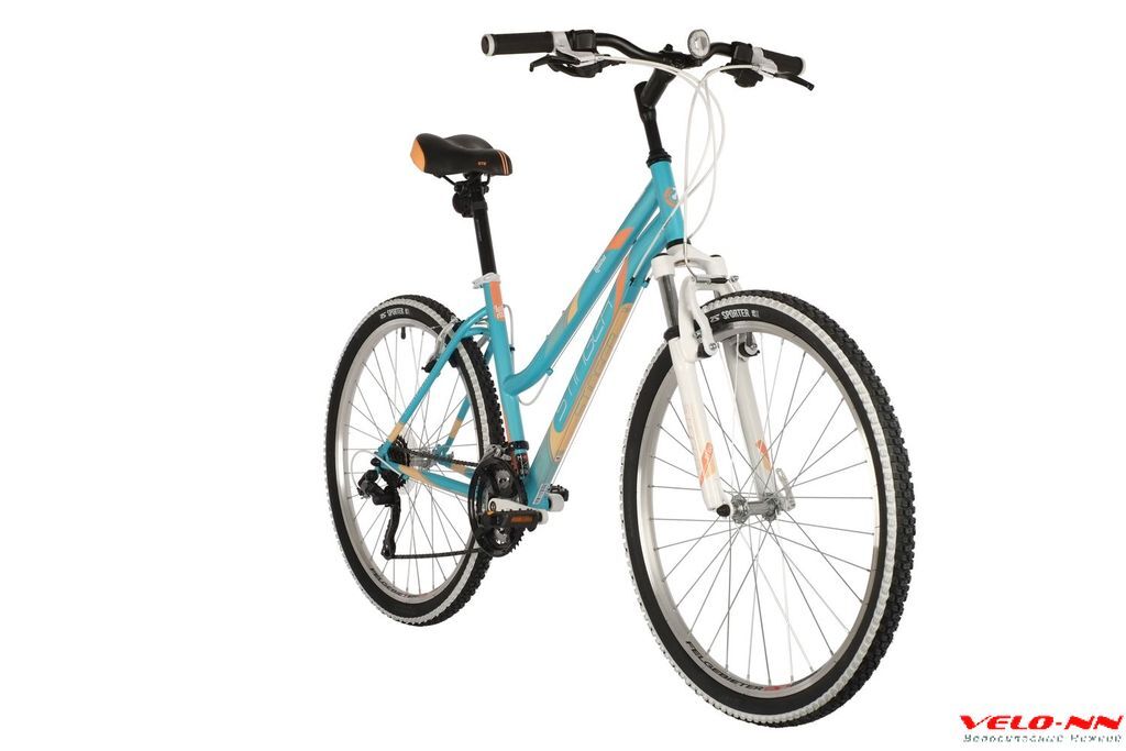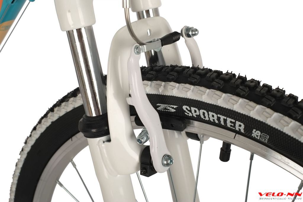 Установлено все необходимое оборудование для комфортного катания трансмиссия состоит из 18 передач, руль регулируется по высоте, установлены классические ободные тормоза типа V-brake, используются двухцветные универсальные покрышки шириной 2.1 дюйма. В комплекте уже установлена защита передней звезды и есть подножка.