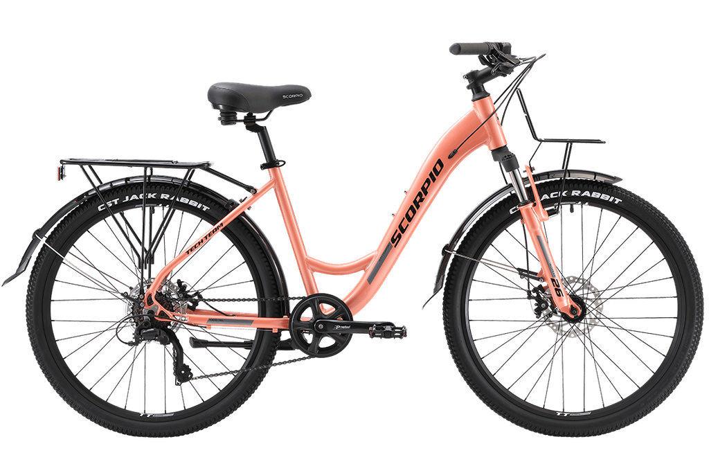 За сглаживание неровностей при езде по не очень хорошим дорогам отвечает амортизационная вилка. Она совместно с удобным эргономическим седлом обеспечивает райдерше необходимый комфорт в движении. Исключают загрязнение одежды летящей из под колёс грязью полноразмерные крылья. Перевозить грузы помогут багажники, имеющиеся и спереди, и сзади. А при остановке удобство парковки будет на совести складной подножки.