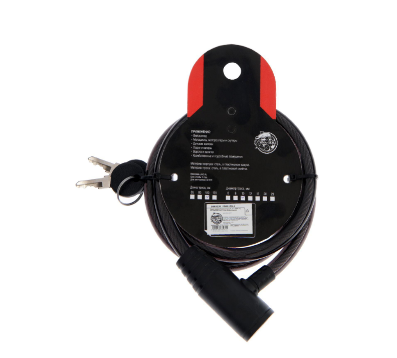 Замок навесной велосипедный Dream Bike, 10×1000 мм, английский ключ с пластиковой ручкой