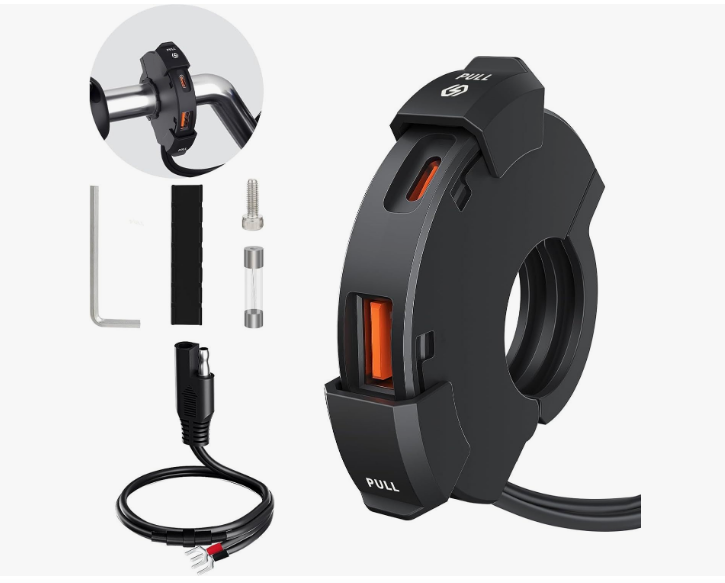 Зарядное устройство USB 18W, TYPE-C 30W на руль мотоцикла, крепление