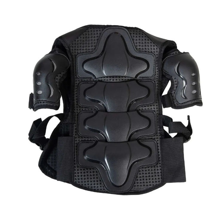 Комплектация: Включает защиту для спины, груди, наколенники и налокотники. Регулировка: Удобные ремни и застежки для надежной фиксации на теле ребенка, что позволяет легко подгонять защиту под размер.